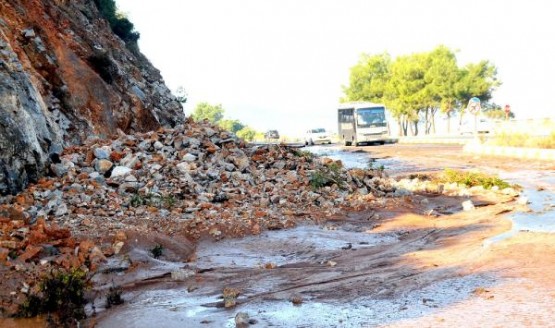 Patlama nedeniyle Bodrum- Milas Karayolu suyla birlikte dağdan gelen taş, toprak yığınlarıyla doldu. Trafiğe kapatılan yolun açılması için ekipler çalışma başlatılırken, ilçeye 3 gün boyunca su verilemeyecek.
