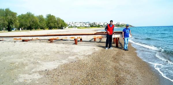 BODRUM'un Akyarlar Mahallesi'nde, deniz yaklaşık 10 metre çekildi. Deniz ile arası açılan iskeleler, göze çarparken, emekli öğretim üyesi Prof. Dr. Ahmet Nuri Tarkan, olayın mevsimsel olduğunu belirterek panik ve endişeye gerek olmadığını söyledi.