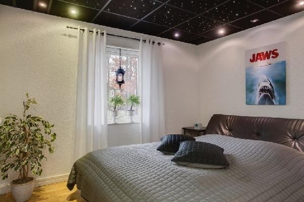 Fornangsgaten 14 numarada bulunan ev dışarıdan bakıldığında diğer evler gibi oldukça normal görünüyor. Ancak, eve gelenleri ana girişte Arnold Schwarzenegger’in oynadığı Predator heykeli karşılıyor. Girişin sonunda uzay filmlerindeki kapılara benzer bir kapı ve duvarlarda heykeller bulunuyor. Kapının arkasında ise 'Alien' filmi sahnelerine benzeyen bir oda ve yanında, ortasında elektrikli bateri bulunan bir müzik ve eğlence odası yer alıyor. Evin hangi odasına girilirse girilsin, uzay filmlerinden esintileri görmek mümkün. İsveç standartlarına göre oldukça ucuz olan evi kimin satın alacağı ise merakla bekleniyor.