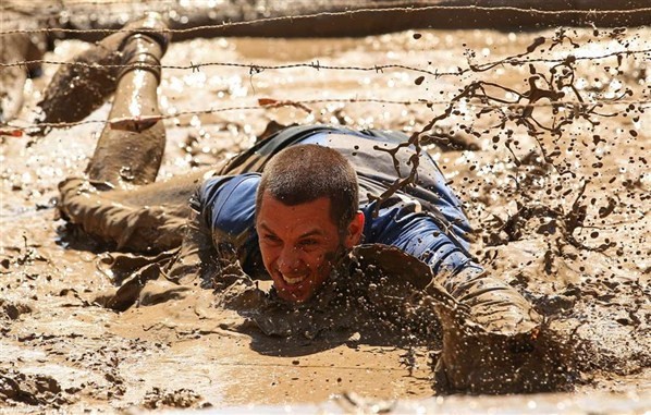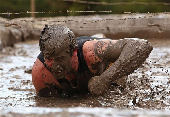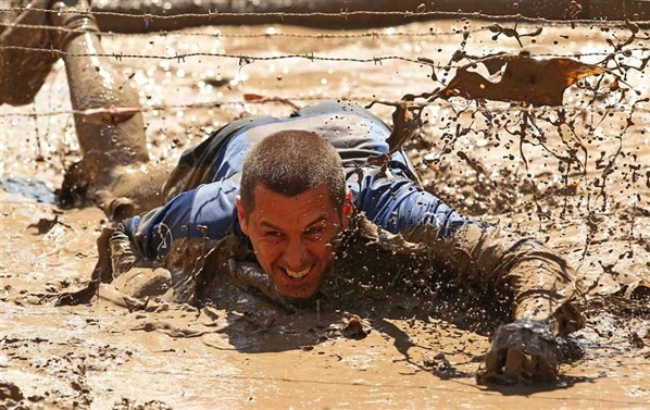 Bu mesafe boyunca yarışmacılar buz gibi soğuk sulardan geçmek, çamurda sürünmek, karanlık tünellerden geçmek, dikenli tellerden oluşan parkurlarda sürünmek zorunda.(getty images turkey)