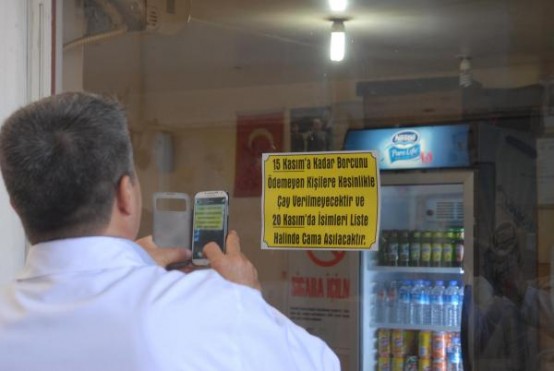 Aydın’ın Kuşadası İlçesi’nde çay ocağı işleten 47 yaşındaki Hüseyin Demir, bazı müşterilerinin borçlarını ödememesi üzerine isyan etti. Müşterilerine borçlarını ödemeleri için 20 Kasım’a kadar süre tanıyan Demir, işyerinin camına, uyarı yazısı asıp, süre bitiminde borcunu ödemeyenlerin adlarının yer aldığı listeyi de cama asacağını belirtti. Kuşadası İlçesi’ndeki Belediye İş Merkezi’nde, 45 yaşındaki eşi Fatma Demir ile çay ocağı işleten 3 çocuk babası Hüseyin Demir, bazı müşterilerinin borçlarını ödememesi üzerine farklı bir yola başvurdu. İşyerinin camına uyarı yazısı yapıştıran Demir, borcunu ödemeyenlere 15 Kasım’dan itibaren çay verilmeyeceğini, 20 Kasım’da da söz konusu kişilerinin adlarının bulunduğu listeyi cama asacağını dile getirdi. DEVLET BİLE SÜRE TANIYOR, BORÇ YAPILANDIRIYOR Yaklaşık 40 müşteriden 2 bin ile 20 lira arasında değişen miktarlarda alacağı olduğunu kaydeden Hüseyin Demir, “Bazı müşteriler çay parasını ödemiyor. Defalarca istedim, kimse iyi niyet gösterip borcunu ödemiyor. Devlet bile süre tanıyıp yapılandırma yapıyor. Ben de müşterilerime 20 Kasım’a kadar süre tanıdım. Yazdığım duyuruyu camlara yapıştırdım. Eğer yine ödemezlerse, ödemeyenlerin isimlerinin bulunduğu listeyi cama asıp ifşa edeceğim. Müşterilerim sıkıntı yaşıyor olabilir, ama ben de zor durumdayım” dedi. Çay ocağına gelen müşterilerin tebessüm ederek fotoğrafını çektiği duyurunun tedirgin ettiği aynı iş merkezindeki bir borçlu, “Yaşadığımız ekonomik sıkıntılar nedeniyle içtiğimiz, ziyaretimize gelenlere ısmarladığımız çayların parasını bile ödeyemiyoruz. Ama o da haklı. Listeyi asarsa çok üzülürüm, hoş olmaz. Bence Hüseyin bey müşterilerini düşünüp liste asmaz” dedi.