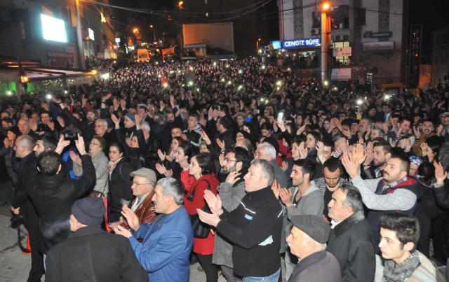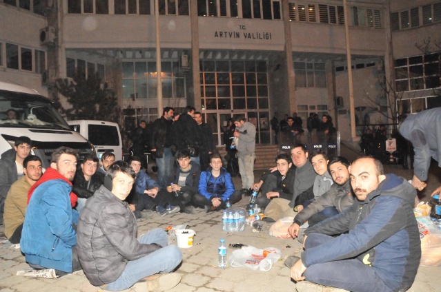 Yeşil Artvin Derneği'nin çağrısı üzerine dün saat 17.30 sıralarında Otopark Meydanı'nda yaklaşık 2 bin 500 kişi toplandı. 'Cerattepe geçilmez, Artvin halkı yenilmez', 'Katil şirket Artvin'i terket', 'Cengiz'in Valisi Artvin'i terk et', 'Vali istifa' sloganları atan grup, 'Geçit vermem ben zalimin zulmüne' dizeleriyle başlayan ve Maden Miting şarkısı adını verdikleri şarkıyı da seslendirdi. 'Artvin'i yağmacılara teslim etmeyeceğiz' yazılı pankart açan gruba, Artvinlilere ‘terörist' benzetmesi yapan bir televizyon kanalını şikayet etmeleri için RTÜK'ün telefon numaraları da dağıtıldı.