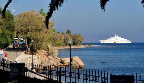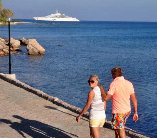 İngiltere Premier Lig'de mücadele eden Chelsea Kulübü'nün sahibi Rus işadamı Roman Abramoviç'in 163 metre uzunluğundaki süper lüks yatı 'Eclipse', Muğla’nın Datça İlçesi’ne geldi. Lüks yattan inen bir çift el ele ilçenin sahilini dolaştı.