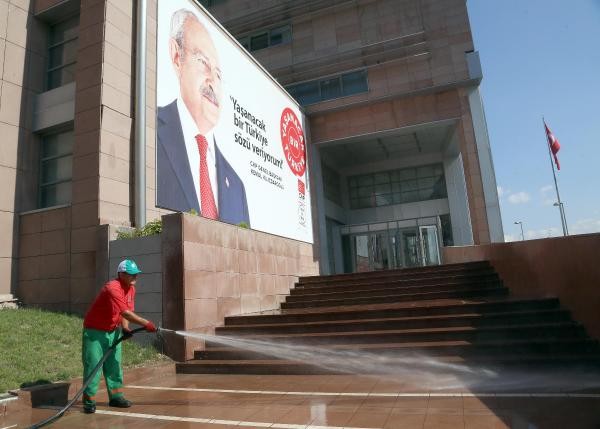CUMHURBAŞKANI Recep Tayyip Erdoğan tarafından hükümeti kurmakla görevlendirilen Ak Parti Genel Başkanı ve Başbakan Ahmet Davutoğlu’nun, koalisyon görüşmeleri için Genel Başkan Kemal Kılıçdaroğlu ile yapacağı görüşmesi öncesi CHP Genel Merkezi’nde hummalı temizlik çalışmaları yapıldı.