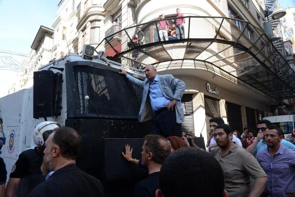 Müdahalenin ardından toplanan gruplar tekrar tekrar caddeye çıkmayı başardı. Bu gruplardan birine polis müdahaleye hazırlanırken CHP İstanbul Milletvekili Mahmut Tanal TOMA’nın üzerine çıktı. Tanal, polisten ‘Müdahale etmeyeceğiz’ sözü alınca TOMA’dan indi. Bu sırada bazı HDP milletvekilleri de Tanal’a destek verip polisle tartıştı. Ancak milletvekilleri bölgeden ayrılınca, polis aynı noktadan gruplara müdahale etti.
