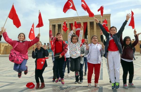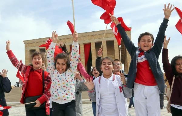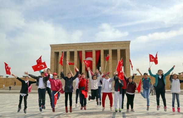 Çocuklar Anıtkabir'de Atatürk'e koştular