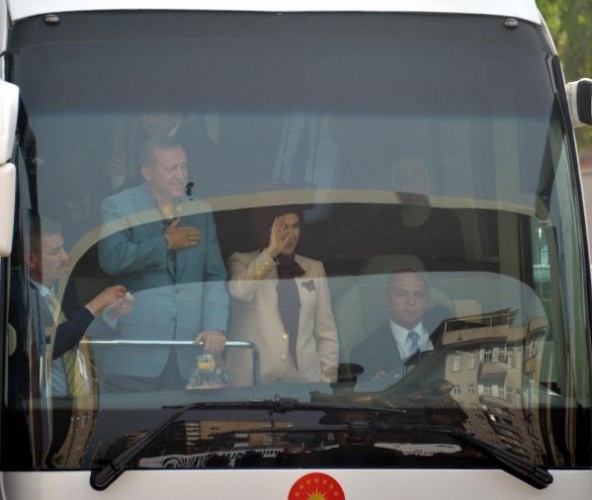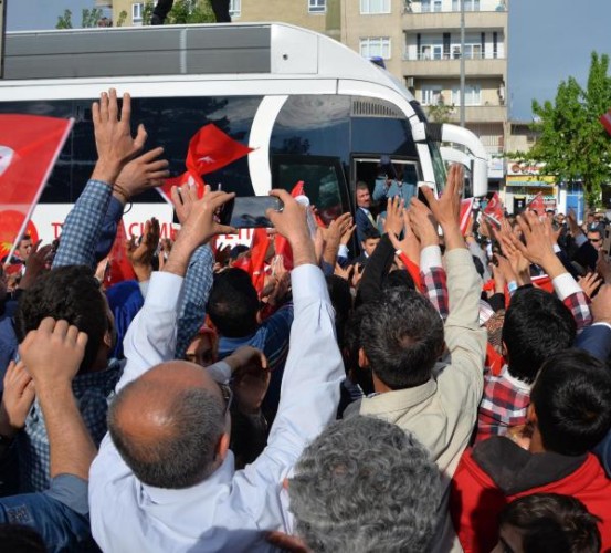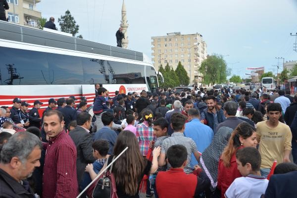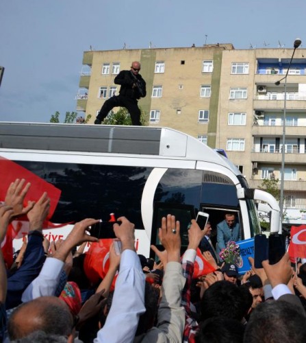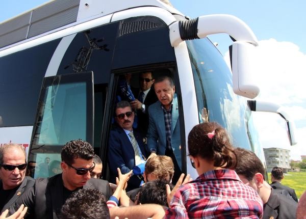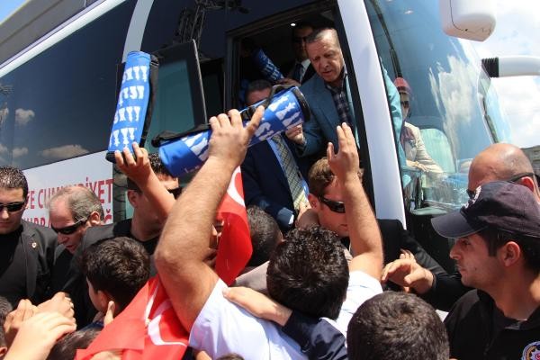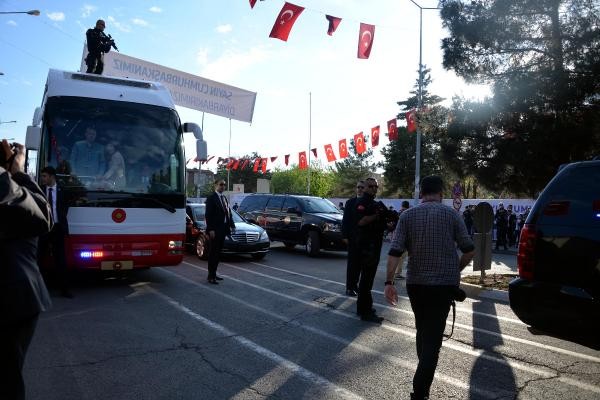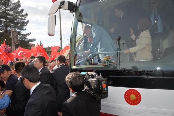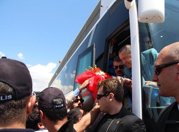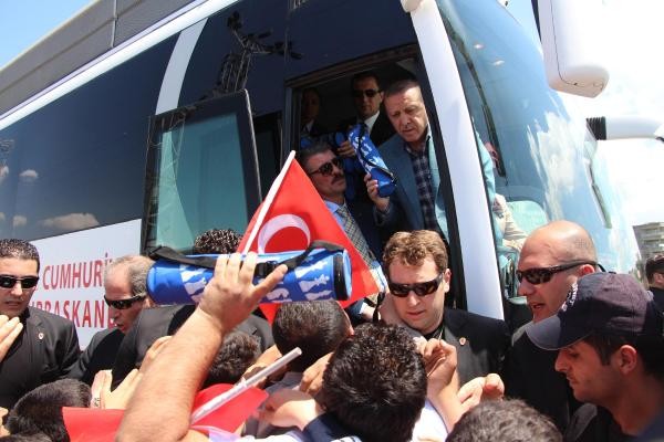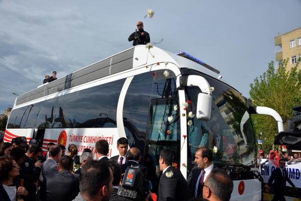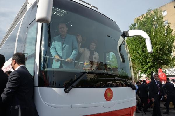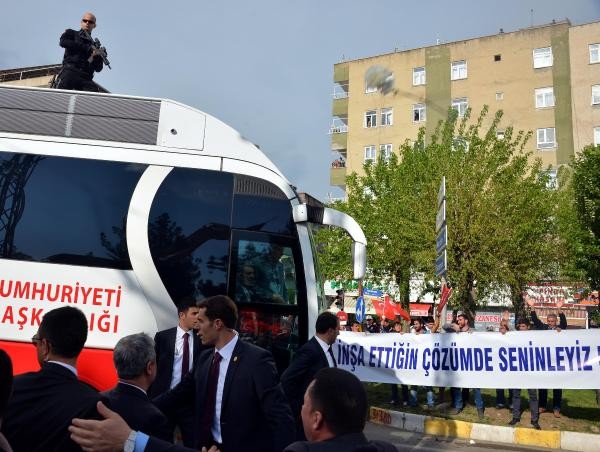 Recep Tayyip Erdoğan, Batman'dan uçakla Cumhurbaşkanı olarak ilk kez geldiği Diyarbakır'da, 8'inci Ana Jet Üssü Komutanlığı'ndan çıkışında vatandaşlar tarafından sevgi gösterileriyle karşılanıp, otobüsüne karanfiller atıldı. Türk bayrakları sallayan vatandaşlar, 'En büyük başkan bizim başkan' sloganları attı. Cumhurbaşkanı Erdoğan, burada bir süre durarak çocuklara oyuncak ve hediyeler dağıttı.