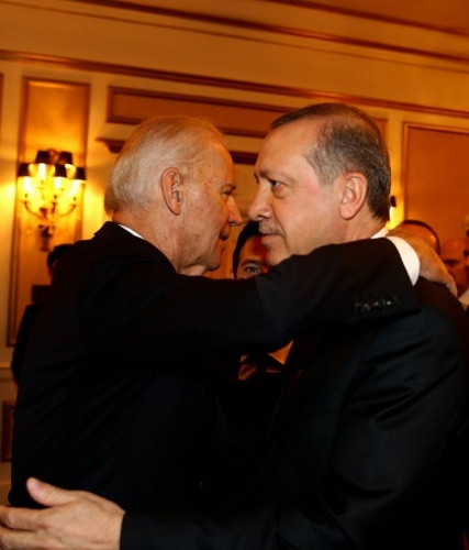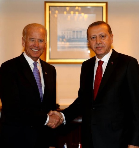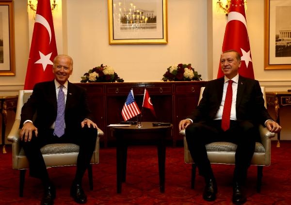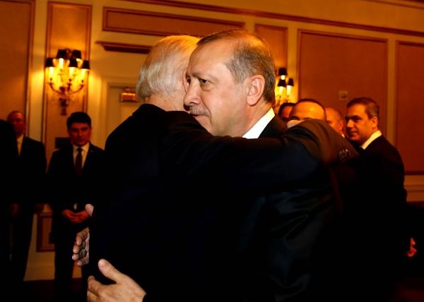 Nükleer Güvenlik Zirvesi için ABD'nin başkenti Washington'da bulunan Cumhurbaşkanı Recep Tayyip Erdoğan, ABD Başkan Yardımcısı Joe Biden ile, kaldığı otelde görüşüyor. Bilen ile Erdoğan'ın objektifler karşısında birbirlerine samim davranıp gülmeleri dikkat çekti.