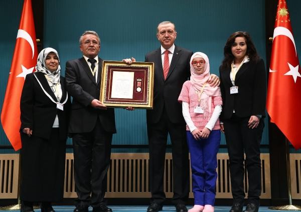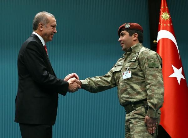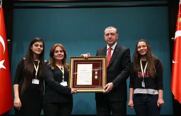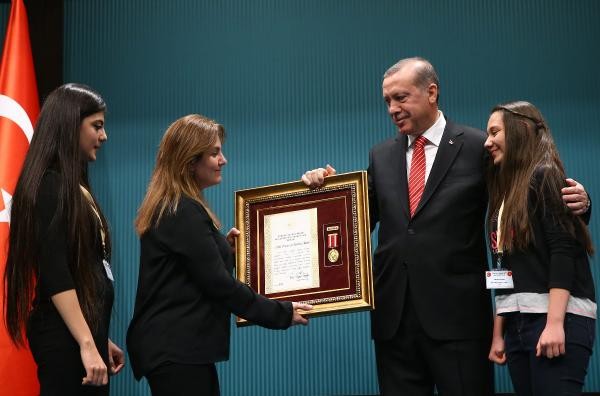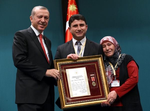 Devlet Övünç Madalyası ve Beratı Tevcihi törenine katılarak madalya ve beratları sahiplerine veren Cumhurbaşkanı Erdoğan, şehitlik ve gazilik makamlarının her bakımdan yüce olduğuna işaret ederek, "Bizim kültürümüzde savaşa gidenin ardından güzel bir söz kullanılır. Denilir ki, ‘iki güzelden biri’, yani şehitlik veya gazilikten biri temenni edilir. Sizler, ‘iki güzelden biri’ne kavuşmanın şerefine, izzetine ve ikramına nail olmuş nadide insanlarsınız" dedi.
