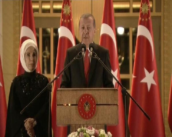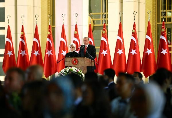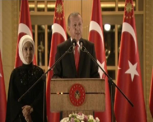 CUMHURBAYKANI Recep Tayyip Erdoğan eşi Emine Erdoğan ile birlikte, 30 Ağustos Zafer Bayramı'nın 93'üncü Yılı nedeniyle ilk kez Cumhurbaşkanlığı Külliyesi'nde bir resepsiyon verdi. Erdoğan, resepsiyonda yurt içi ve yurt dışında görev yapan Silahlı Kuvvetler mensuplarıyla görüntülü telefon bağlantısı gerçekleştirdi.
