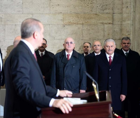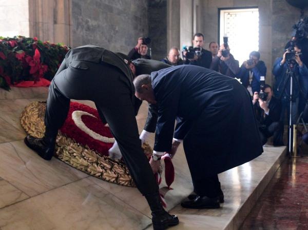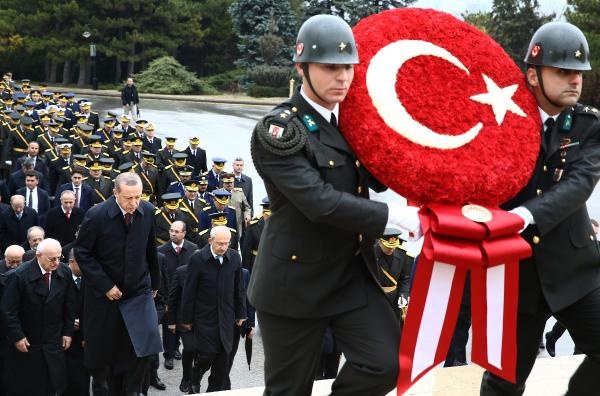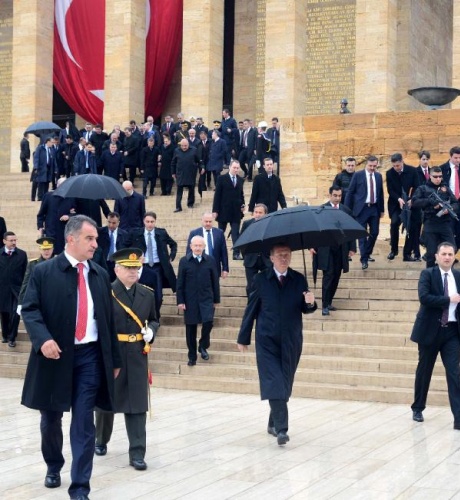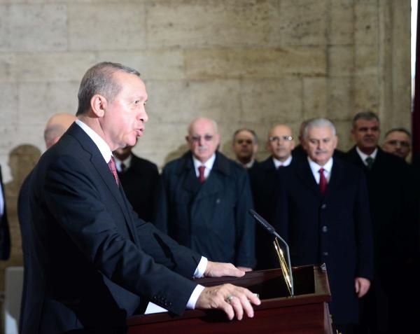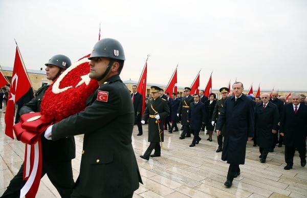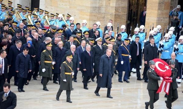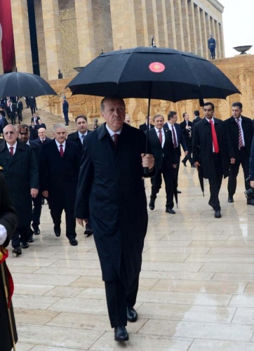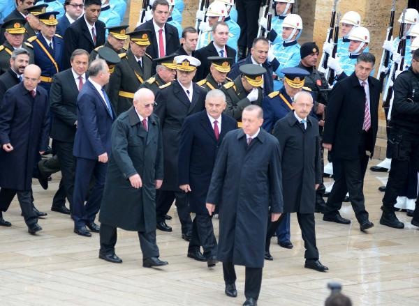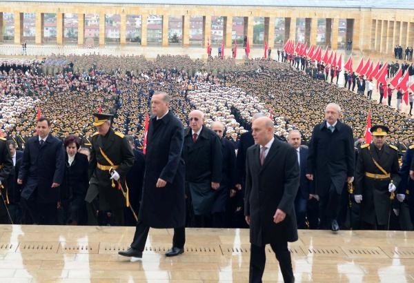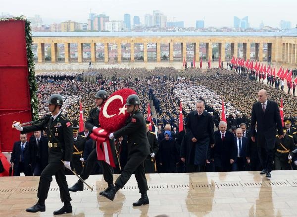 Cumhurbaşkanı Erdoğan, devlet erkanıyla birlikte, Aslanlı Yol'dan Atatürk'ün mozolesine yürüdü. Aslanlı Yol'da yan yana yürüyen Başbakan Yıldırım ile CHP lideri Kılıçdaroğlu'nun yürüyüş sırasında bir süre sohbet ettiği görüldü. Cumhurbaşkanı Erdoğan'ın Atatürk'ün mozolesine çelenk bırakmasının ardından saygı duruşunda bulunuldu ve İstiklal Marşı okundu.
