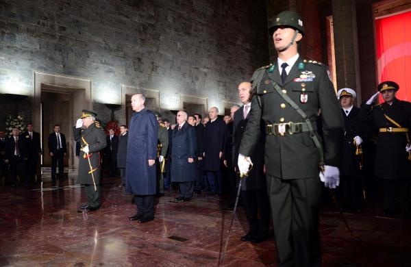 CUMHURİYET Bayramı'nın 93'üncü yıl dönümü kutlamaları çerçevesinde ilk tören Anıtkabir'de yapıldı. Törende, Cumhurbaşkanı Recep Tayyip Erdoğan, TBMM Başkanı İsmail Kahraman, Başbakan Binali Yıldırım, CHP Genel Başkanı Kemal Kılıçdaroğlu, Bakanlar Kurulu üyeleri, Genelkurmay Başkanı Orgeneral Hulusi Akar ve kuvvet komutanlarıyla yüksek yargı başkanları da hazır bulundu.