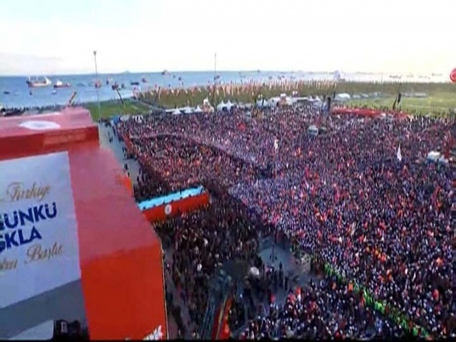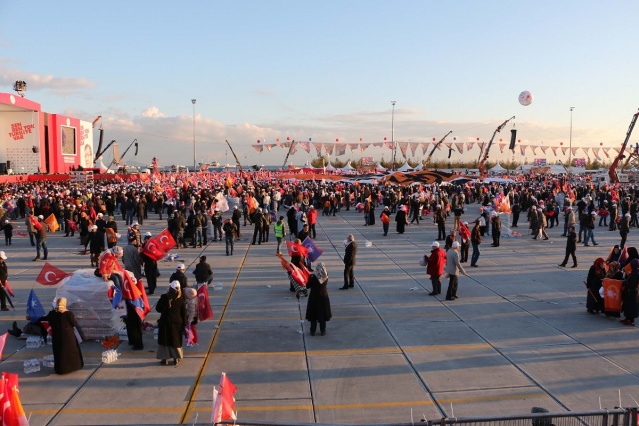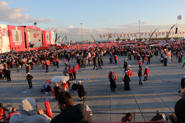 BAŞBAKAN KONUŞURKEN AYRILDILAR Başbakan Davutoğlu'nun konuşması 1 saat 5 dakika sürdü. Ancak daha konuşmanın başlarında alan boşalmaya başladı. Mitinge katılanların büyük bir bölümü erkenden evlerine dönmek için alandan ayrıldı. Başbakan konuşmasının sonunda ön bölümde kalan kalabalığa seslendi.