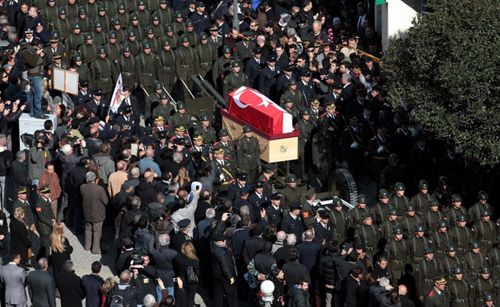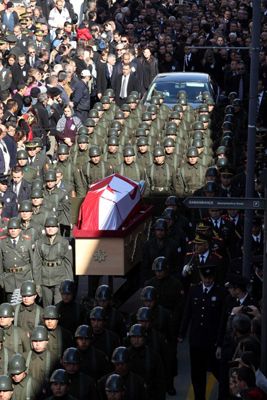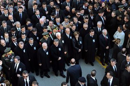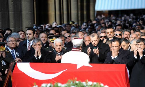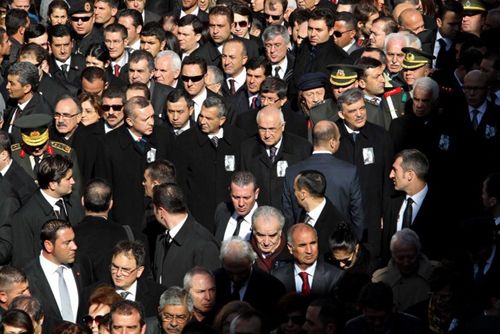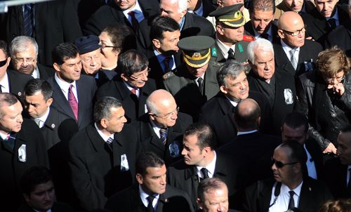 Cenaze törenine, Cumhurbaşkanı Abdullah Gül, TBMM Başkanı Cemil Çiçek, Başbakan Recep Tayyip Erdoğan, Başbakan Yardımcısı Beşir Atalay, Dışişleri Bakanı Ahmet Davutoğlu, AB Bakanı ve Başmüzakereci Egemen Bağış, Aile ve Sosyal Politikalar Bakanı Fatma Şahin, Milli Savunma Bakanı İsmet Yılmaz, Maliye Bakanı Mehmet Şimşek, Başbakan Yardımcısı Bekir Bozdağ, Avrupa Konseyi Parlamenterler Meclisi Başkanı Mevlüt Çavuşoğlu, Genelkurmay Başkanı Orgeneral Necdet Özel, Kara Kuvvetleri komutanı Orgeneral Hayri Kıvrıkoğlu, İslam İşbirliği Teşkilatı (İİT) Genel Sekreteri Ekmeleddin İhsanoğlu, CHP Genel Başkanı Kemal Kılıçdaroğlu, önceki genel başkanlar Deniz Baykal, Hikmet Çetin, Altan Öymen, MHP Genel Başkanı Devlet Bahçeli, Demokrat Parti Genel Başkanı Namık Kemal Zeybek, DSP Genel Başkanı Masum Türker, AK Parti Genel Başkan Yardımcısı Ömer Çelik, merhum Başbakan Bülent Ecevit'in eşi Rahşan Ecevit, Saadet Partisi Genel Başkanı Mustafa Kamalak ve BBP Genel Başkanı Mustafa Destici, TOBB Başkanı Rifat Hisarcıklıoğlu, Alparslan Türkeş'in oğulları MHP milletvekili Tuğrul Türkeş, AK Parti Milletvekili Ahmet Kutalmış Türkeş ve törene iştirak eden partilerin diğer yöneticeleri katılıyor.