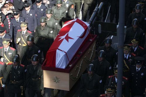 Kurucu Cumhurbaşkanı Denktaş'ın tabutu başında hem askerler hem de üst düzey devlet görevlileri tarafından saat 09.30'a kadar ihtiram nöbeti tutuldu.