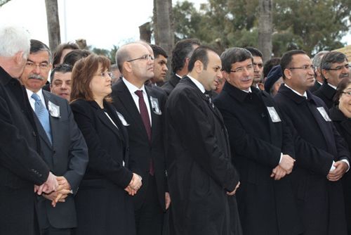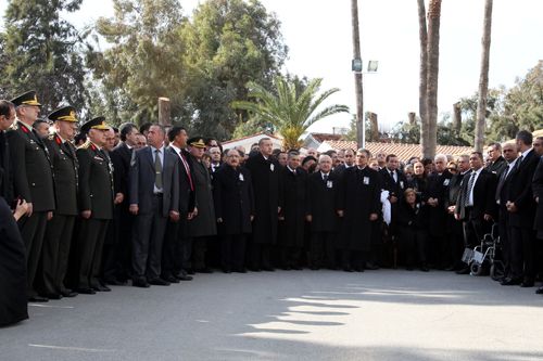 Törende, protokol taziye defterini imzaladı:Cumhurbaşkanı Gül, TBMM Başkanı Çiçek, Başbakan Erdoğan ve diğer konuklar Denktaş'ın naaşının başında durarak Denktaş'ın ailesine taziyelerini sundu.