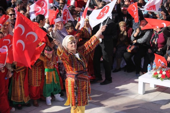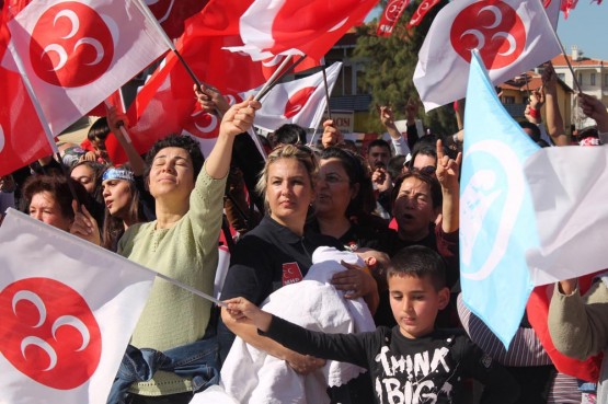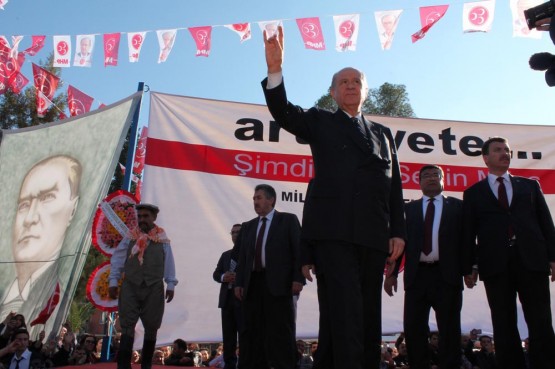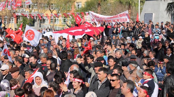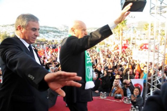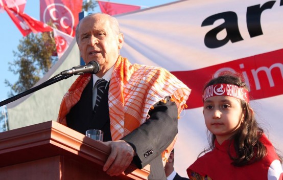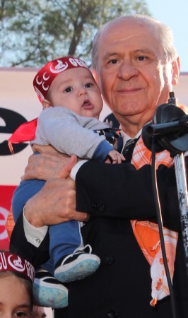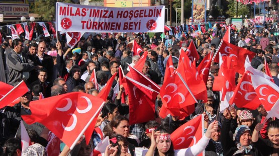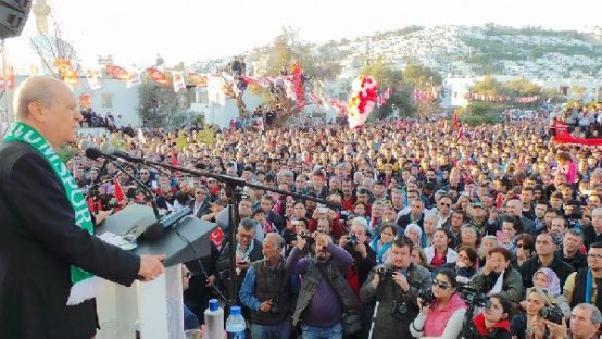 “RECEP’İN BİLAL’İ Mİ, HASAN AĞA’NIN BİLALİ Mİ KARLI” MHP Genel Başkanı Devlet Bahçeli, yerel seçim çalışmaları kapsamında geldiği Milas İlçesi’ndeti Atapark’ta, yaklaşık 5 bin kişiye seslendi. Bahçeli’nin miting alanına gelmesi öncesinde bomba imha ekipleri eğitimli köpeklerle güvenlik taraması yaptı. Konuşmasına 30 Mart’taki yerel seçimler kapsamında Türkiye’yi karış karış gezdiklerini belirterek başlayan Bahçeli, ezan okunması nedeniyle bir süre ara verdi. Bu arada sahneye getirilen çocuklarla tek tek ilgilenip seven Bahçeli, “Daha yok mu gelecek çocuk” diyerek, espiri yaptı. Ezanın ardından konuşmasına devam eden Bahçeli, 17 Aralık’taki yolsuzluk ve rüşvet operasyonuna değindi.