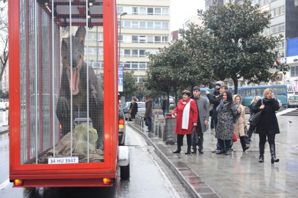 İstanbullular Cumartesi günü şehrin kalbi olan Taksim’de 65 milyon yıl önce soyu tükenmiş bir dinozorla karşılaştılar!