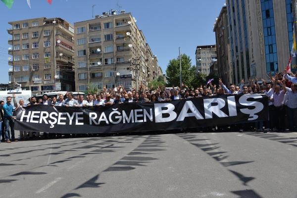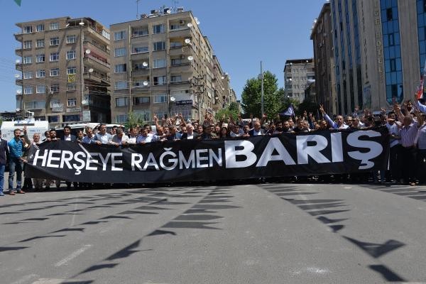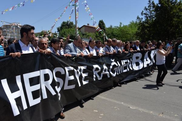 DİYARBAKIR'da dün HDP'nin düzenlediği mitingde 3 kişinin ölümü 100'den fazla kişinin yaralanmasına neden olan bombalı saldırıyla ilgili çok yönlü soruşturma sürerken, bombanın metal bilyelerle güçlendirilen ve TNT patlayıcı yerleştirilen piknik tüpü olduğu belirtildi. Patlamada 2'si bomba paralarının isabet etmesi, 1'i de ağaçdan düşme sonucu ölen 3 kişi göz yaşları arasında toprağa verildi, yaralılanan 100'den fazla kişinin tedavisi ise hastanelerde sürüyor. Diyarbakır'daki sivil toplum örgütleri sıldırıyı kınayarak, olay yerine karanfiller bıraktı.