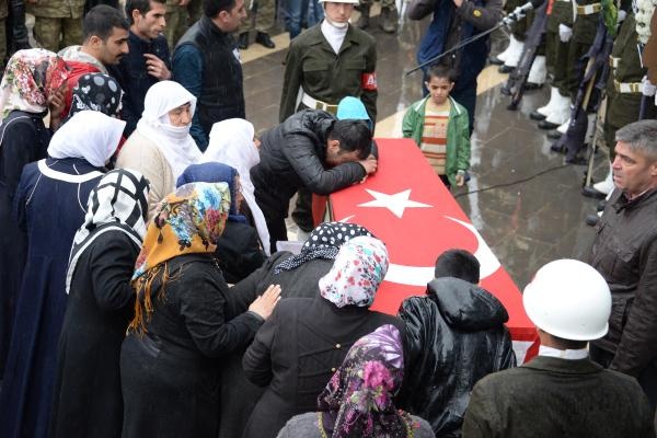 MARDİN'in Nusaybin İlçesi'nde PKK'lı grupları etkisiz hale getirmek, kazdıkları hendekleri kapatmak ve barikatları ortadan kaldırmak amacıyla sürdürülen operasyon sırasında dün şehit düşen Uzman Çavuş Süleyman İyikul, memleketi Diyarbakır'da gözyaşları ve Türkçe-Kürtçe ağıtlar arasında toprağa verildi.