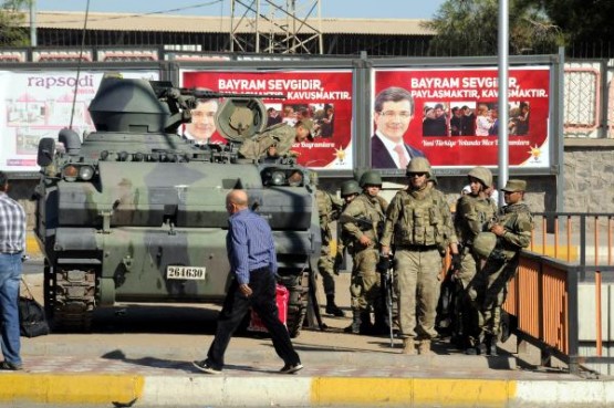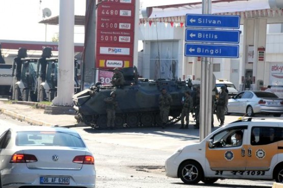 SURİYE'nin Kobani kentine IŞİD saldırılarını protesto sırasında çıkan olaylarda 10 kişinin öldüğü, bir çok banka, kamu binası ve işyerinin yakılıp tahrip edildiği Diyarbakır'da, sokağa çıkma yasağı yarın saat 06.00'ya kadar uzatılırken, kentin stratejik noktalarına askeri birlikler konuşlandırıldı. Diyarbakır'da 2006 yılı mart ayında 10 kişinin öldüğü olayların ardından ilk kez kente inen askerler, zırhlı araçlarla önlem aldı. Sokağa çıkma yasağının uzatıldığının geç öğrenilmesi nedeniyle çok sayıda özel araç Diyarbakır caddelerinde dolaştı, bazı yerlerde yasağa uyulmadığı gözlendi.