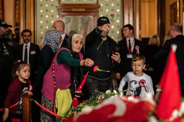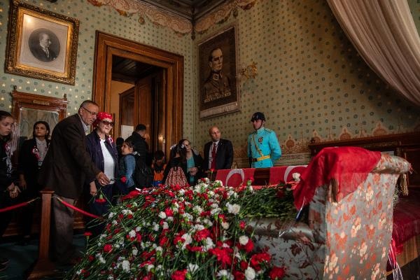 Dolmabahçe Sarayı önünde erken saatlerden itibaren uzun kuyruklar oluşturan vatandaşlar ve öğrenciler, Atatürk'ün yatağına ve çevresine beyaz ve kırmızı karanfiller bıraktı. Bazı vatandaşlar Atatürk'ün yatağının önünde dua okurken, bazıları da fotoğraf çekti. Ziyaret sırasında bazı vatandaşlar, gözyaşlarını tutamadı.