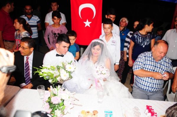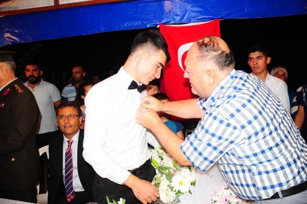 39'uncu Mekanize Piyade Tugay Komutan Yardımcısı Albay Şefik Atak, gelin ve damata Genelkurmay Başkanlığı'nın hediyesini olan Cumhuriyet Altını'nı takdim etti. Kısa zaman önce Kadirli'de 3 vatan evladını son yolculuğuna uğurladıklarını hatırlatan Albay Atak, şunları söyledi: "Kısa zamanda burada 3 vatan evladını son yolculuğuna uğurladık. Hep hüzünlü haberlerle geliyorduk buraya ilk kez mesut bir haber için geliyoruz buraya çok mutluyum. Böyle bir ortamda bizleri buluşturdukları için Ahmet kardeşimize ve Fatma kızımıza çok teşekkür ediyorum. Biraz gecikmeli yaptık düğünü, malum şartlardan dolayı. Bu süre zarfında ailenin bir asker ailesine yakışır bir şekildeki vakur duruşu Sayın Genelkurmay Başkanımızın takdirini kazanmıştır. Bu takdirin bir ifadesi olarak Sayın Genelkurmay Başkanımızın hediyesini takdim etmek istiyorum. Allah mesut bahtiyar etsin."
