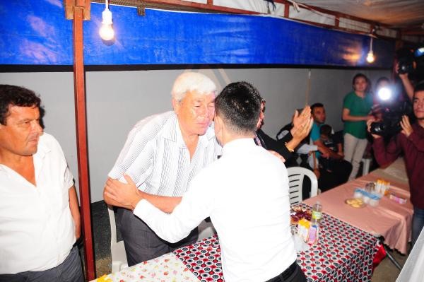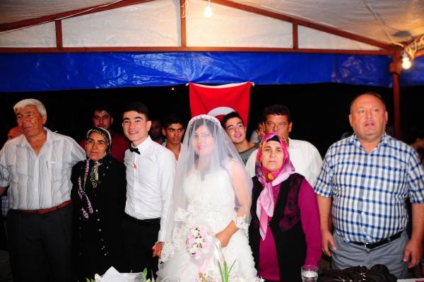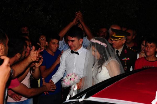 . İlçe girişinde gelin Fatma tarafından karşılanan Karavelioğlu, bir petrol istasyonunda damatlıklarını giydi ve hazır olan gelin arabasıyla baba evine gitti. Annesi Fatma Karavelioğlu'na sarılıp ellerini öpen uzman çavuş, daha sonra babası Hamza Karavelioğlu, kaynanası ve kayınbabasının ellerini öptü.