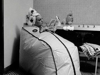 PORTATİF FİN SAUNASI 1962 - Kilo vermek isteyenler için tasarlanmış ilk buhar tulumlarından Resimdeki tasarım çok başarılı olmasa da ilerleyen yıllarda benzer ürünler üretildi… ve hiç biri işe yaramadı