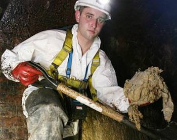 KANALİZASYON TEMİZLEYİCİLİĞİ Yerin metrelerce altına inip insan pisliğinde yüzmek kulağa nasıl geliyor? Bu meslekte olanlar dışkı ve atık dolu kovaları defalarca bir yukarı bir aşağı taşımak durumundadırlar.