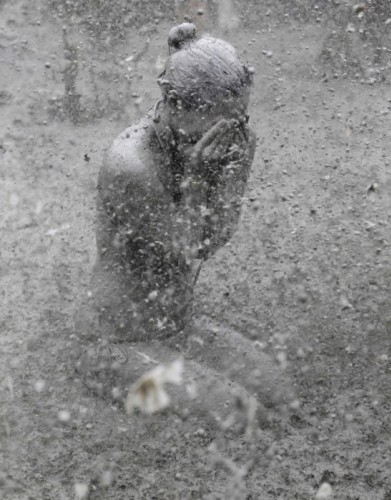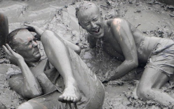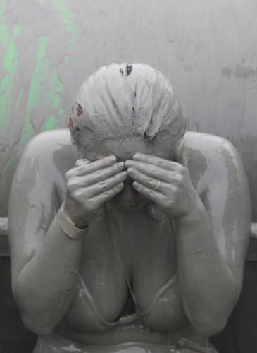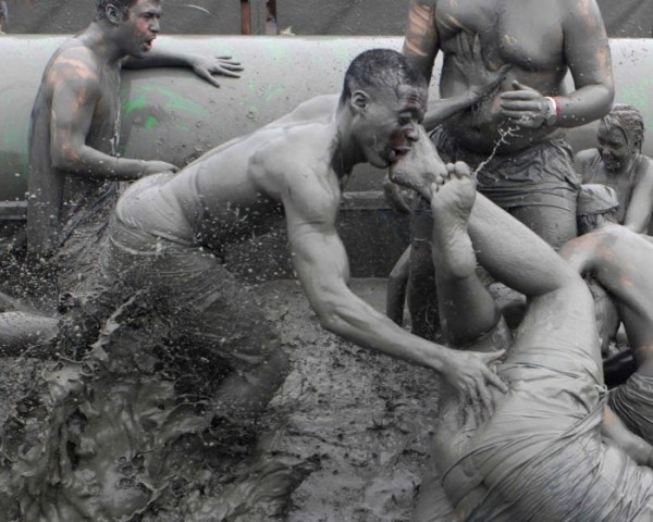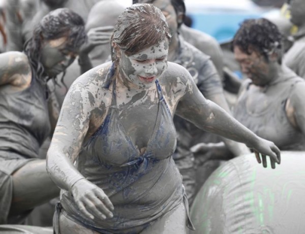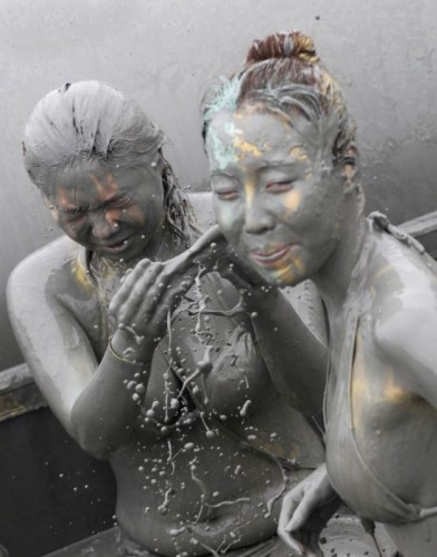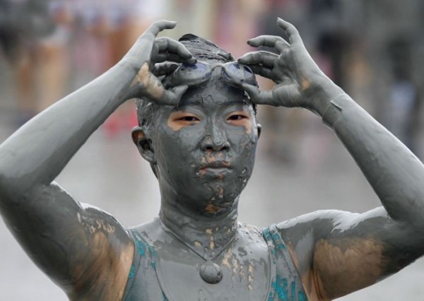 Seul'de gelenekleri bozmayarak çamur güreşi için bir araya gelen gençler yine renkli görüntüler oluşturdular.