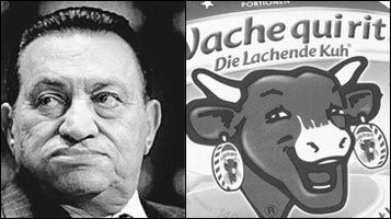 Fransız eritilmiş peynir markası La Vache Qui Rit’nin (lavaşkiri dersem tanırsınız) sembolü malum gülen bir inek. 1970’lerde Mısır marketlerinde bu gülen inekli paketleri görenler basmış kahkahayı: Ya, bu inek Mübarek’e benziyor. Her yere yayılan kıkırtı sesi Kahire’deki saraylara kadar ulaşınca ülkede La Vache Qui Rit’nin satışı yasaklanmış. Ama muhalifler aralarında (eğer üçüncü kişi jurnalci değilse) Mübarek’ten hâlâ “inek” diye bahsetmekteler...