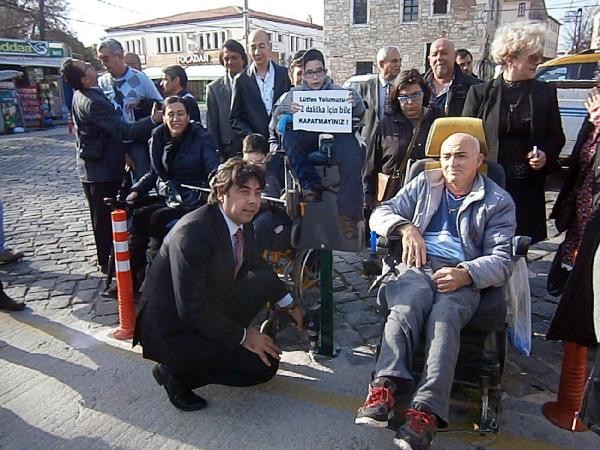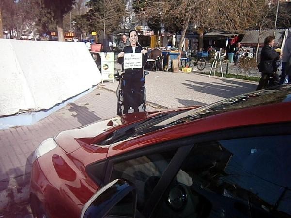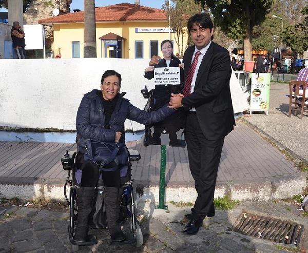 İZMİR'in Foça İlçesi'nde bir süre önce engelliler için yapılan yolun, araç sürücüleri tarafından sürekli işgal edilmesinin önüne geçilemeyince, ilçedeki 3 engellinin maketli uyarı levhaları yerleştirildi.