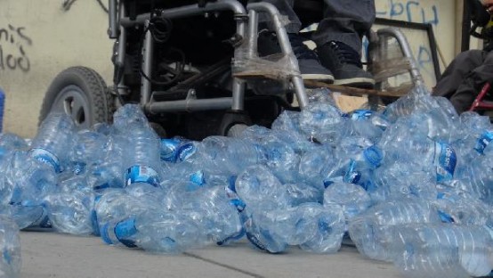 Gazi Ahmet Muhtar Paşa Caddesi Cumhuriyet Lisesi karşısında çuvallarda biriktirilen evsel atıklar engelli araçlarıyla ezilerek geri dönüşüme kazandırıldı. Engellilerin, akülü araba ve tekerlekli sandalyeleriyle başta pet kutular olmak üzere atıkların üzerinden geçerken eğlendikleri görüldü.
