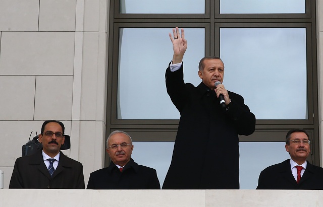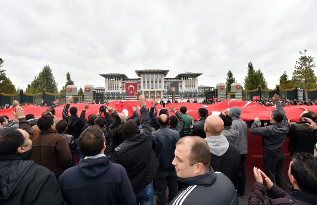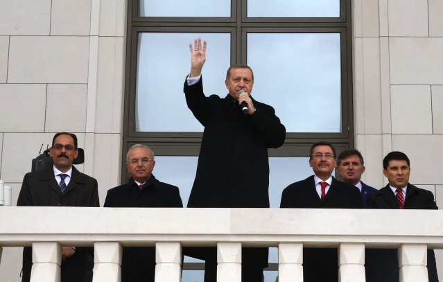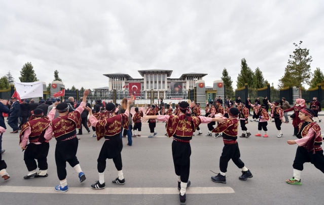 CUMHURBAŞKANI Recep Tayyip Erdoğan, 29 Ekim Cumhuriyet Bayramı kutlamaları kapsamında, Cumhurbaşkanlığı Sarayı'na düzenlenen yürüyüşe katılanları Cumhurbaşkanlığı Sarayı'nın balkonundan selamladı.