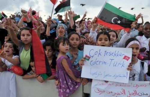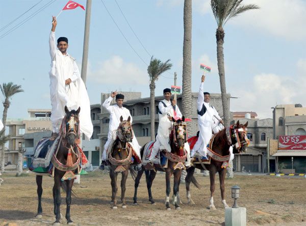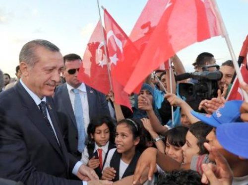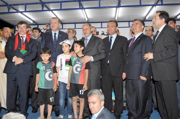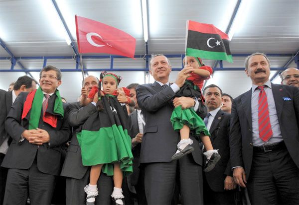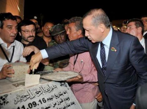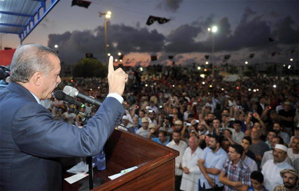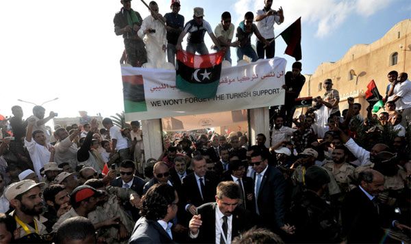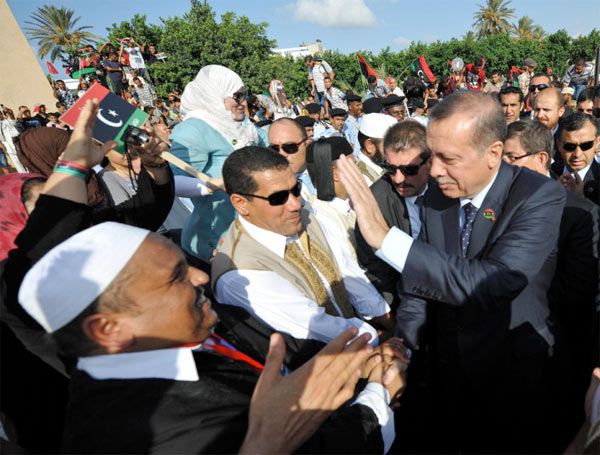 Erdoğan, Libya Ulusal Geçiş Konseyi Başkanı Mustafa Abdülcelil ile geldiği Bingazi Havalimanı'nda kalabalık bir grup tarafından “Evine hoşgeldin” yazılı pankartla karşılandı.