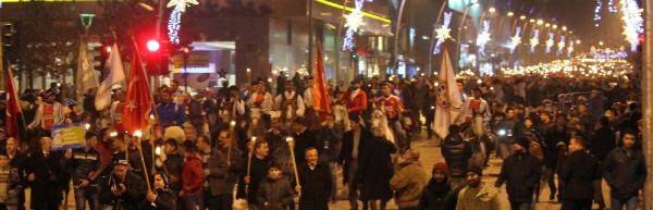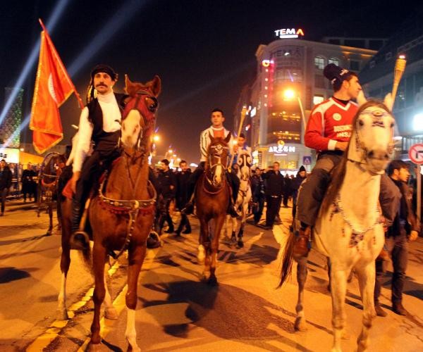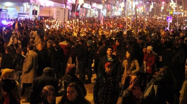 Winterfest kortej yürüşü saat 18.00'de Büyükşehir Belediye Başkanı Mehmet Sekmen'in katılımıyla Narmanlı Cami önünden başladı. Ellerinde meşale bulunan binlerce kişi, Erzurumlu sanatçı İbrahim Erkal'in seslendirdiği 'Hadi gel Erzurum'a gel' müziği eşliğinde yürüdü. Atlı ciritçiler ve atlı kızakların yer aldığı kortejde elinde Türk bayrağını dalgalandıran 85 yaşındaki beyaz sakallı ciritçi Baki Bayraktutan vatandaşlardan yoğun ilgi gördü.