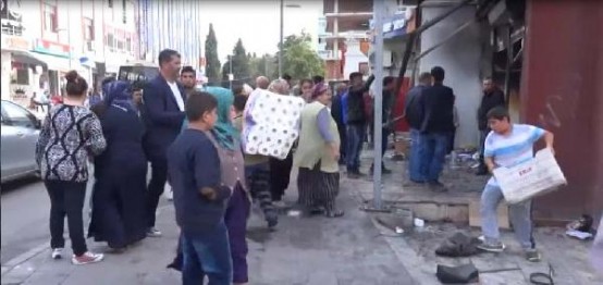 Esenyurt'ta dün gece yaşanan olaylar sırasında yanan markette sağlam kalan malzemeler bugün yüzlerce kişi tarafından çanta ve torbalara doldurulup evlerine götürüldü.