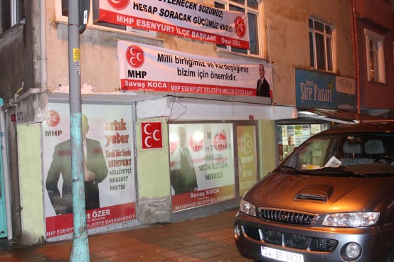 MHP’nin Esenyurt’ta açtığı seçim irtibat bürosuna, MHP İstanbul Büyükşehir Belediye Başkan Adayı Rasim Acar’ın ziyareti sırasında ateş açıldı.