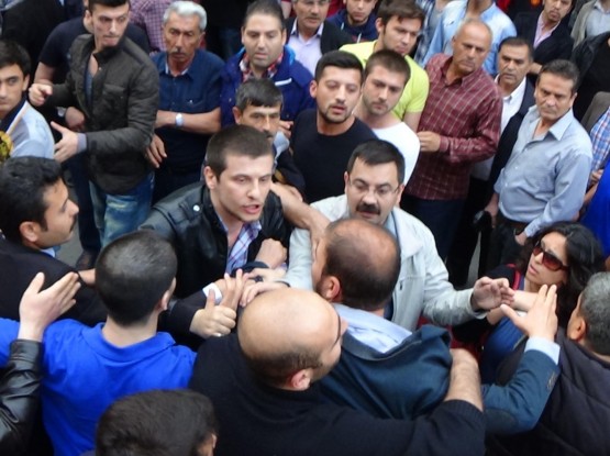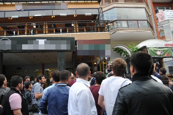 Yapılan konuşmaların ardından kalabalık çeşitli sloganlar attı. Kalabalık dağılmak üzereyken bir-kaç kişi basın açıklamasının yapıldığı yerin yakınında bulunan bir barın terasında oturan 2 Irak uyruklu gence doğru şişe ve taş attı. Iraklıları Türk sanan ve İstiklal Marşı sırasında ayağa kalkmadıklarını öne süren gruptakiler bar içerisine girmeye çalıştı. Araya giren sivil polisler ile Eskişehir Ülkü Ocağı yöneticileri öfkeli grubu engelledi. Gruptaki bazı kişiler görüntü alan basın mensuplarına da saldırmak istedi ancak bunları da Ülkü Ocakları yöneticileri sakinleştirdi. Kalabalık daha sonra dağıldı.