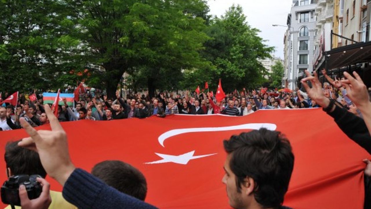 ESKİŞEHİR'de Ülkü Ocakları tarafından düzenlenen 'Bayrağa saygı' yürüyüşü sonunda bir barın terasında oturup bira içen 2 Iraklı gençle gruptakiler arasında gerginlik yaşandı. Iraklıları Türk sanıp İstiklal Marşı'nda ayağa kalkmadıklarını öne süren gruptakilerin saldırısını polisler ve ülkü ocağı yöneticileri engelledi.