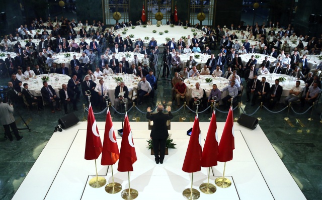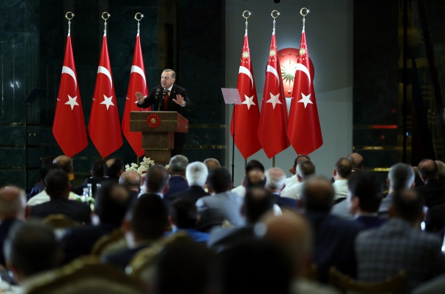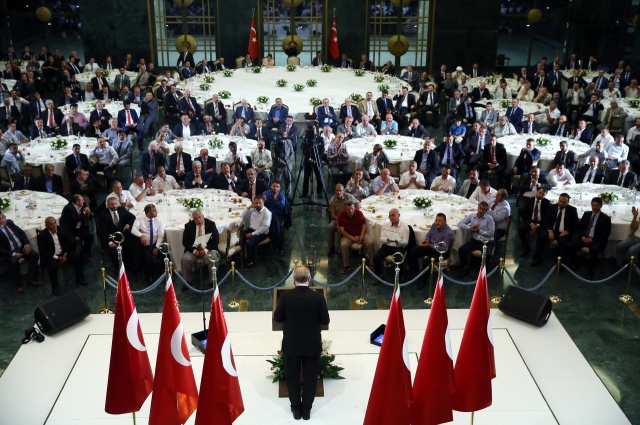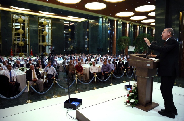 Cumhurbaşkanı Recep Tayyip Erdoğan, Cumhurbaşkanlığı Sarayı'nda esnaf ve vatandaşlarla iftarda bir araya geldi. İftarda, "Hem okudum hem de yazdım" türküsünün nakarat kısmını okuyan Erdoğan, "Biz ne esnafımızı ihmal edip orta direğe bel verdireceğiz ne de tek bir Mehmedimizin boşuna can vermesine müsaade edeceğiz" dedi.