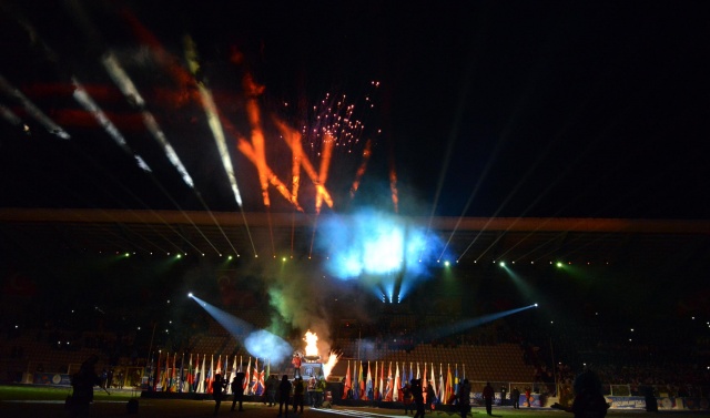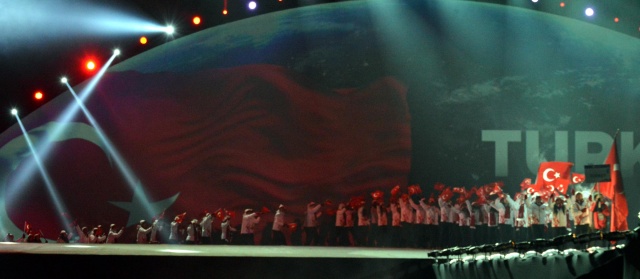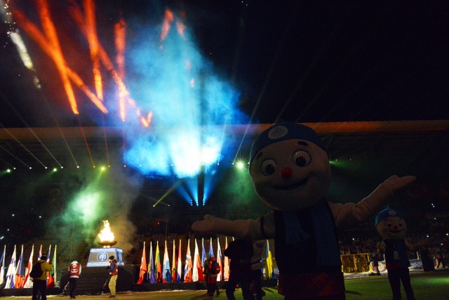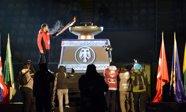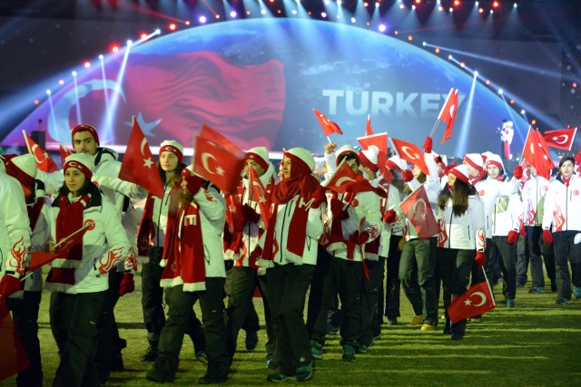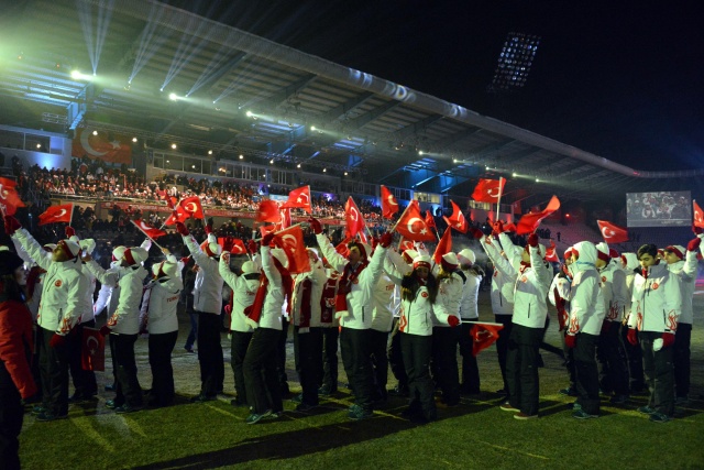 Tören, TRT Erzurum Radyosu'nun çocuk korosunun okuduğu İstiklal Marşı ile başladı. Daha sonra oyunlara katılan 34 ülkeden 650 sporcunun geçit töreni başladı. İtalya tek sporcu ile katılırken, 69 sporcuyla yarışacak olan Türk Milli Takımı seyircilerden büyük destek gördü. Geçit töreni bittikten sonra tribünlerdeki seyircilerin büyük bir bölümü programın bundan sonraki bölümünü izlemedi.