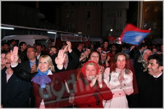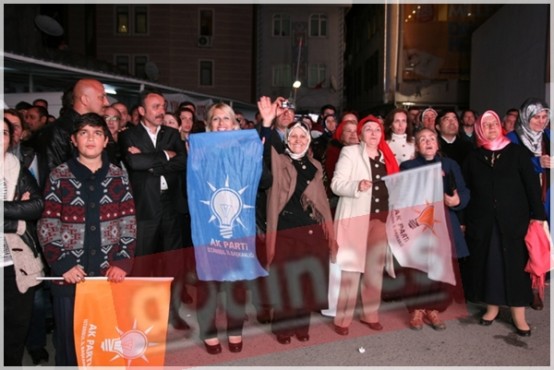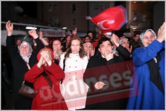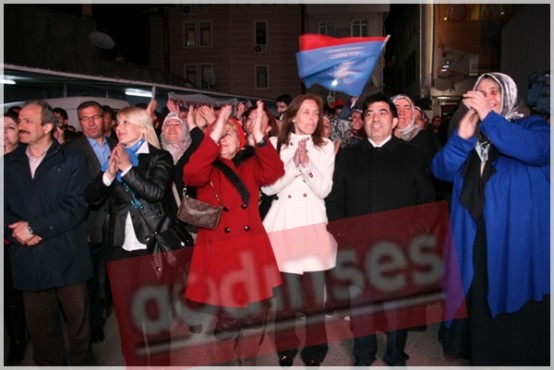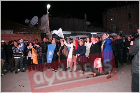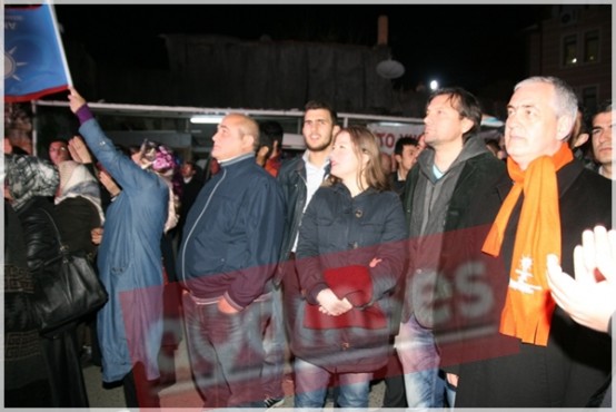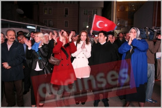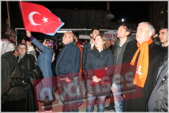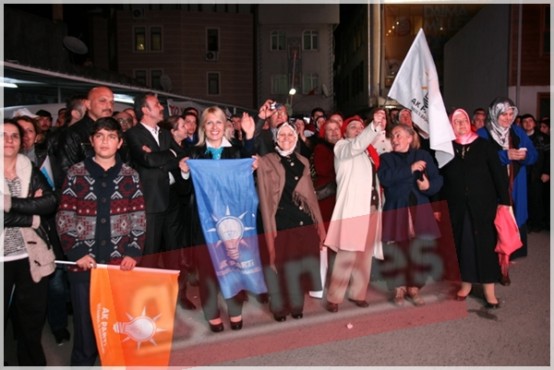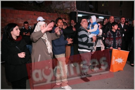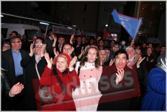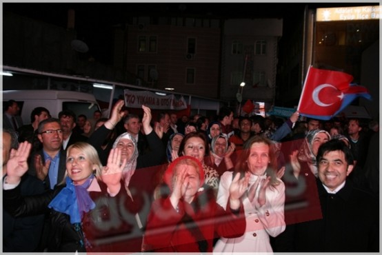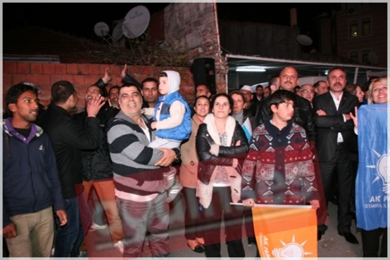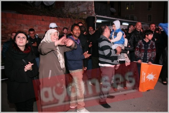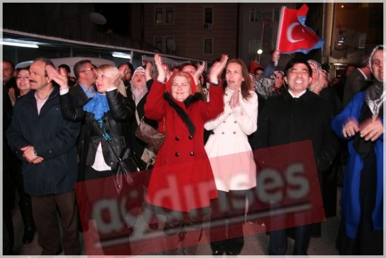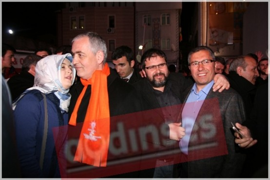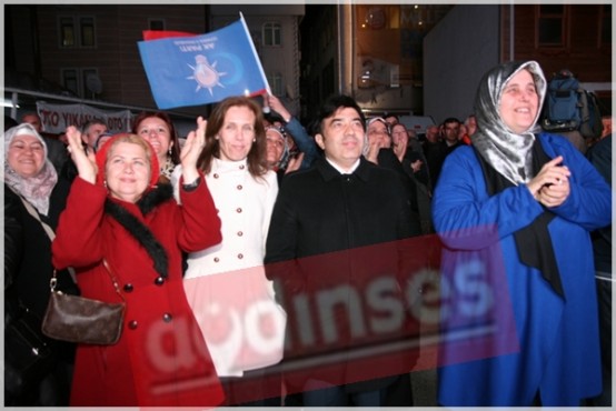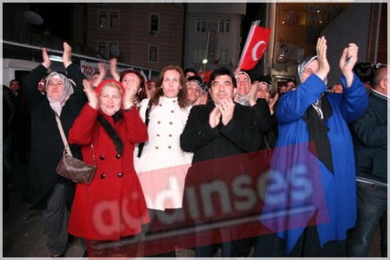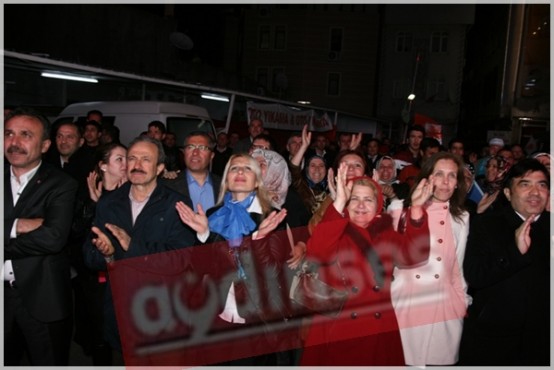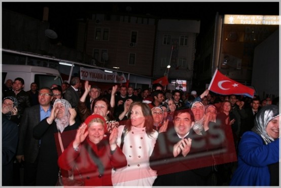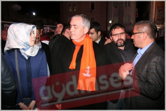 Eyüp Belediye Başkan'ı seçilen Remzi Aydın, gece Eyüp Ak Parti önüne gelen partililerin tebriklerini kabul etti. Seçim zaferini kutladı. Remzi Aydın'ı kızı ve eşi yalnız bırakmadı. k