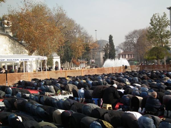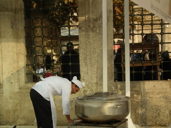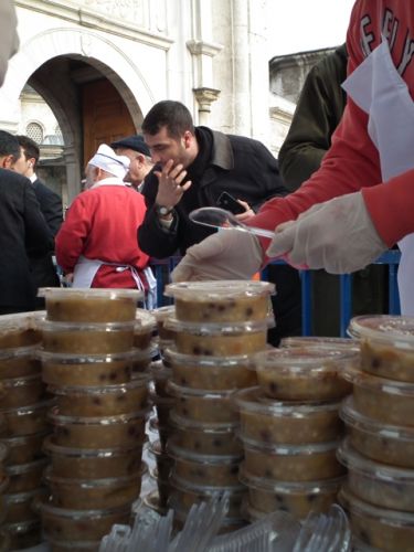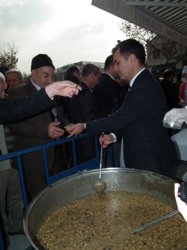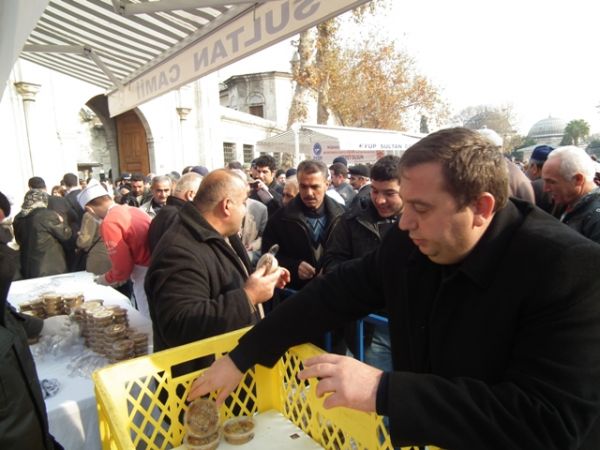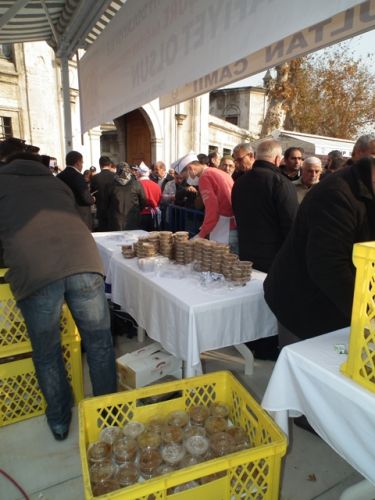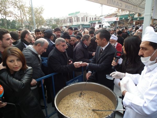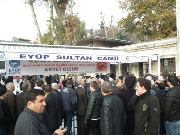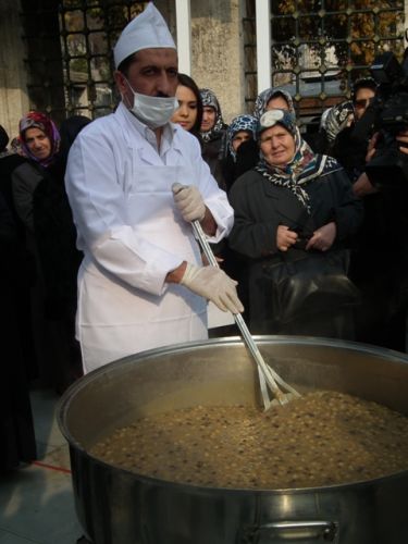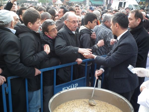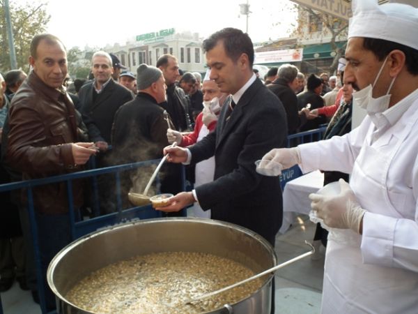 Aşure dağıtımı öğle namazından sonra başladı.