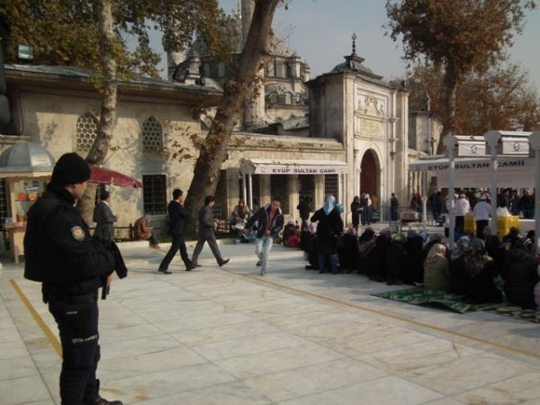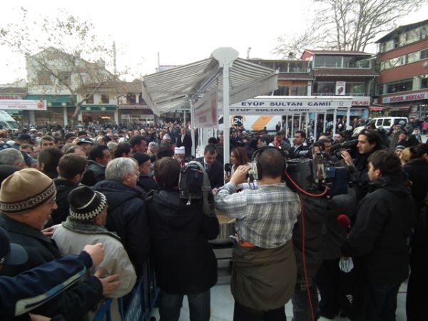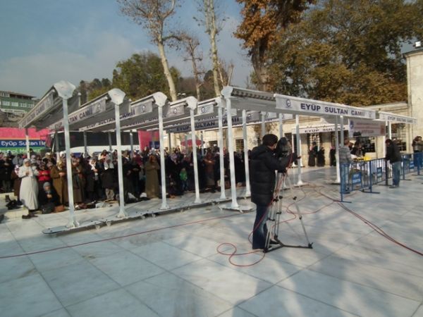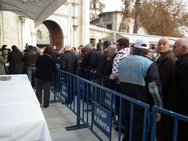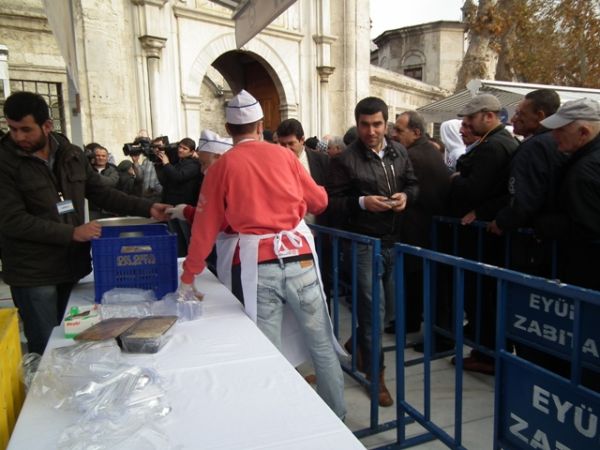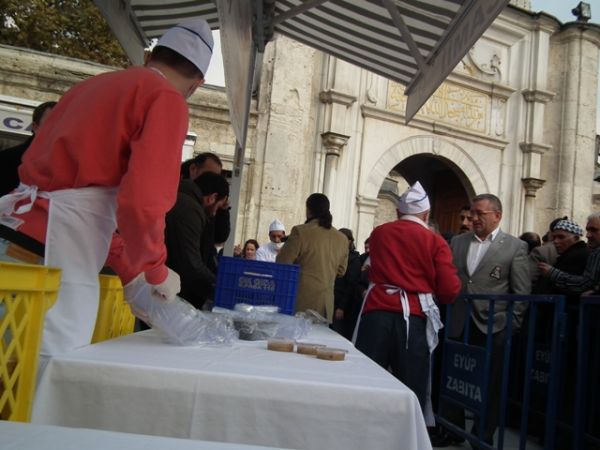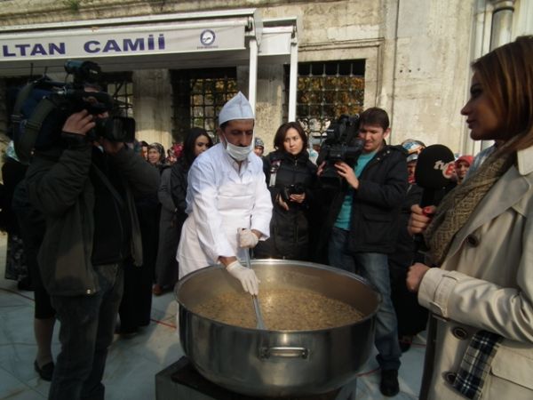 Eyüp Sultan Meydanı’ndaki aşure dağıtımına basının ilgisi oldukça yoğundu.