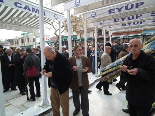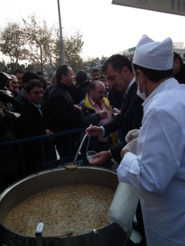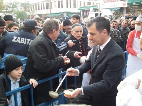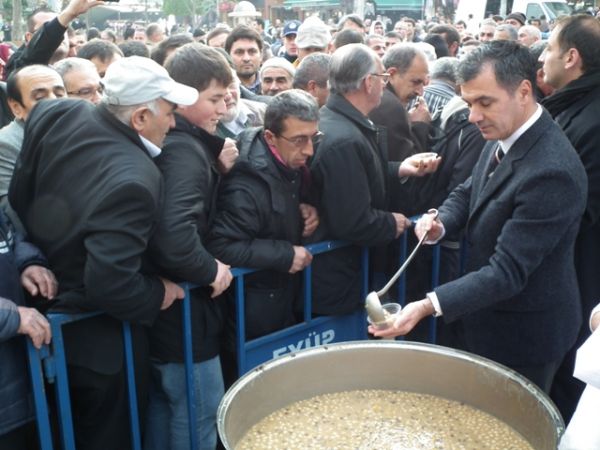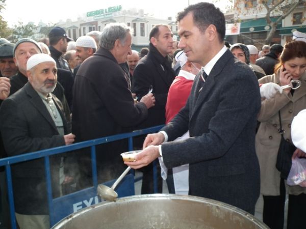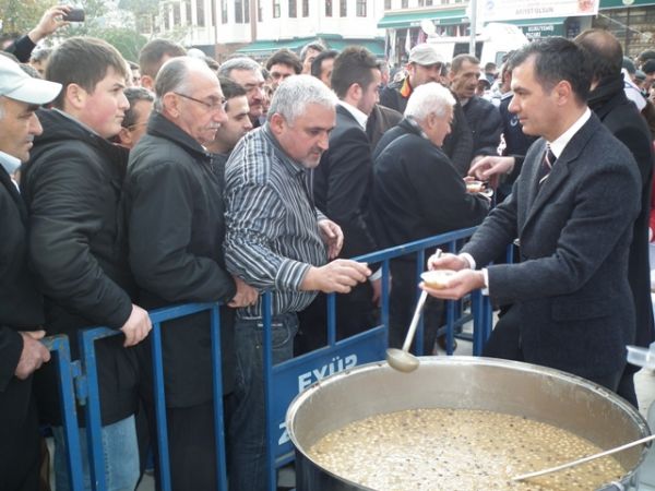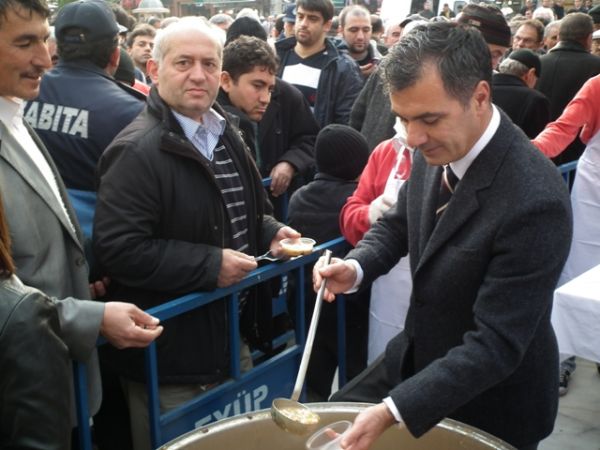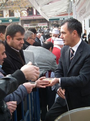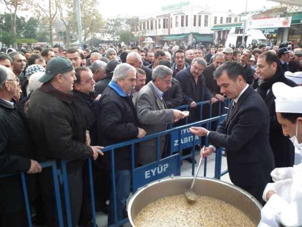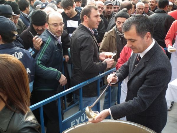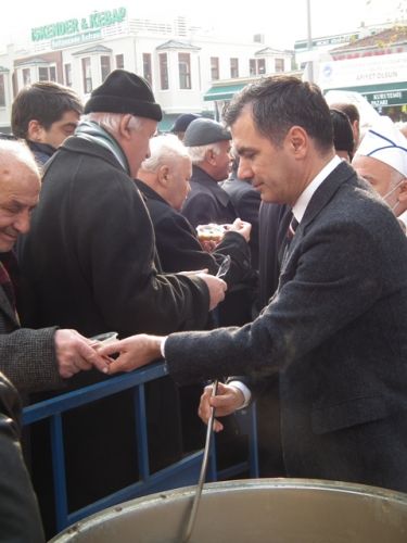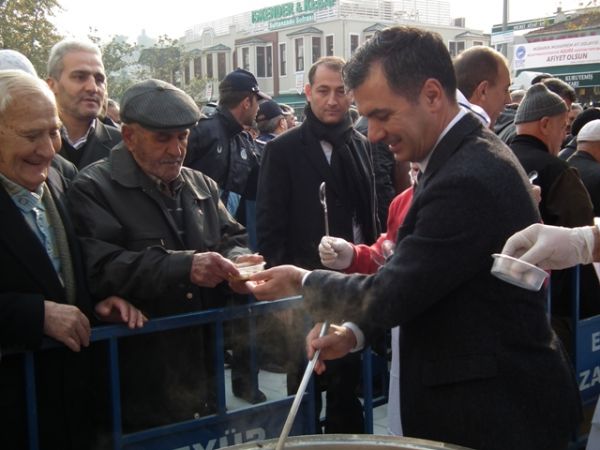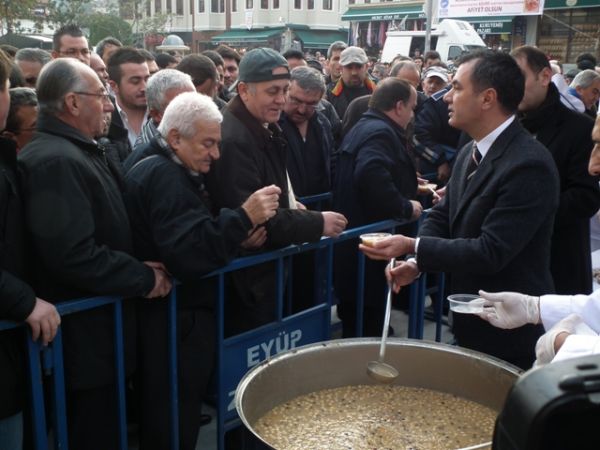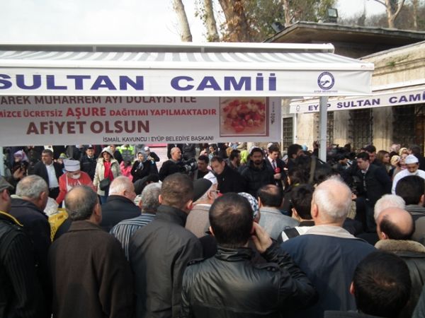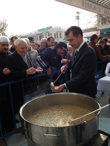 Öğle Namazı sonrası, Eyüp Belediye Başkanı ismail Kavuncu vatandaşlara kendi elleriyle aşure dağıttı.