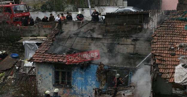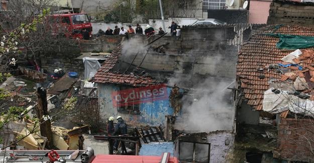 Evde iki çocuk bulunduğu babalarının işte olduğu annelerinin ise okula ablalarını götürdüğü evde çocuklar bulunduğu sırada çıkan yangını gören anne fenalık geçirdi.