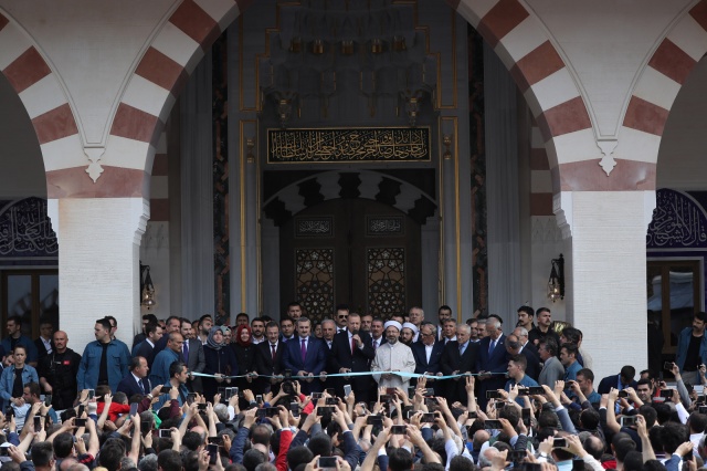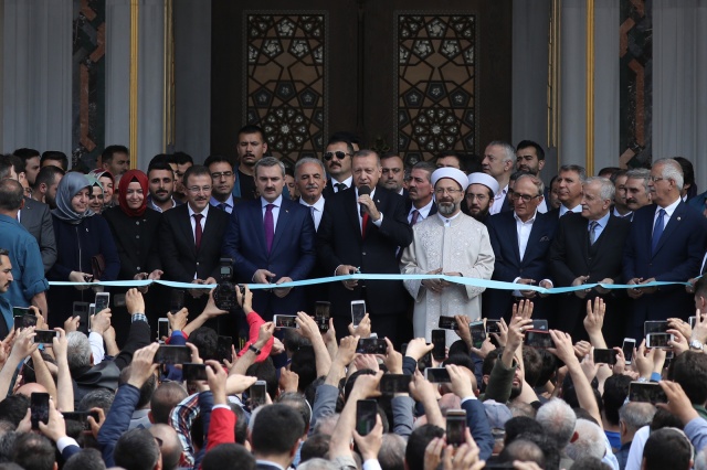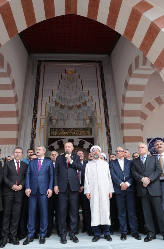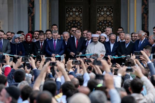 Namazın ardından Erbaş tarafından okunan duadan sonra kurdele keserek caminin açılışını gerçekleştiren Erdoğan, vatandaşlara hitap etti.