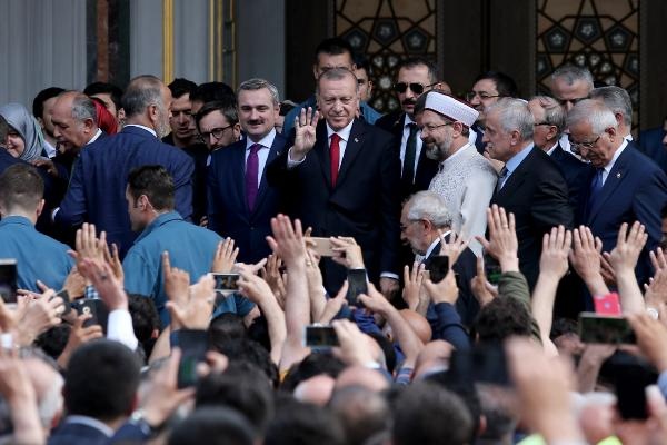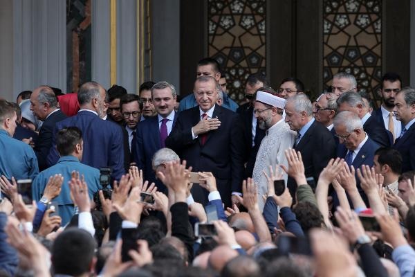 Cumhurbaşkanı Erdoğan, protokol ve davetliler, Hacı Osman Torun Camii’nde Diyanet İşleri Başkanı Ali Erbaş tarafından verilen hutbenin ardından cuma namazını kıldı.